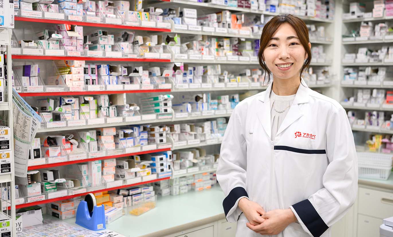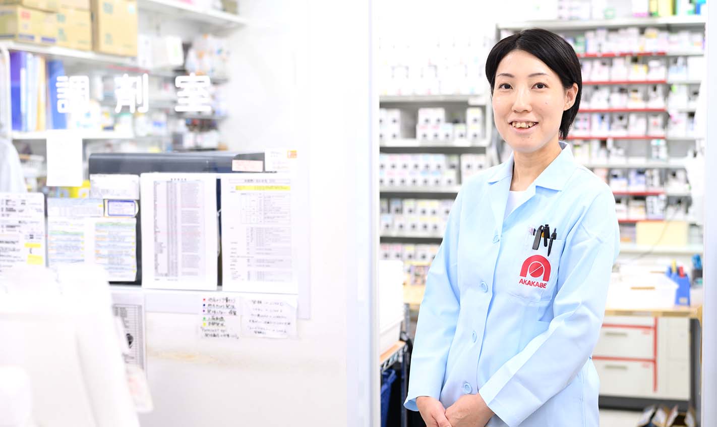 2023年4月に、薬剤師としてキャリア採用でアカカベに入社しました。アカカベは学生時代の実習先でもあったので、会社の理念や、薬局の雰囲気を知っていたことが入社を決めた大きな理由でした。